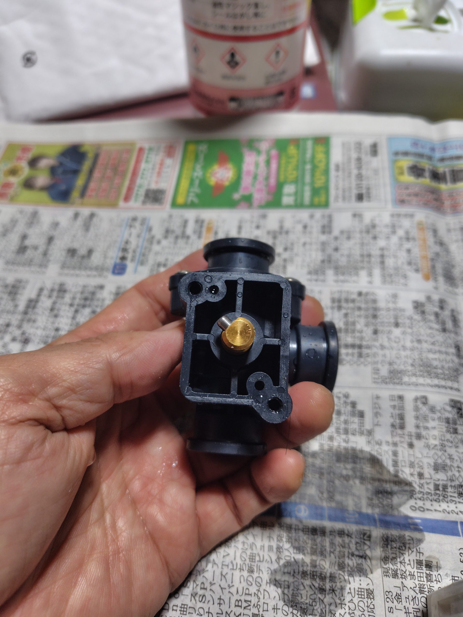 (後々わかりましたが、この部品の締め付けトルクで弁の回転がかわりますので、あまりきつく締めずに、ガタが出ないギリギリの締め具合にするのがコツです)
