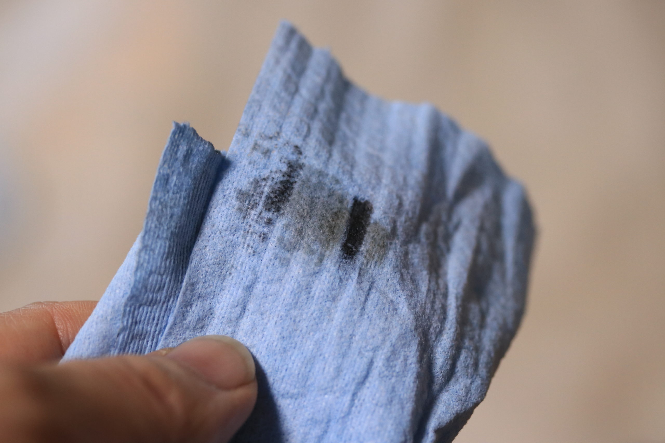 そのまま磨くと汚れでフェルトが黒ずんでいくので、磨きはペーパーウェスで行いました。