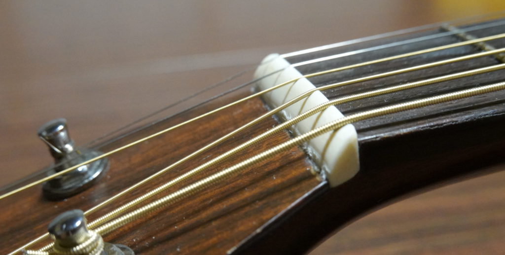 などがあげられますが、現在アコースティックギターのナットとしては、ほとんど牛骨かタスクだと思います。