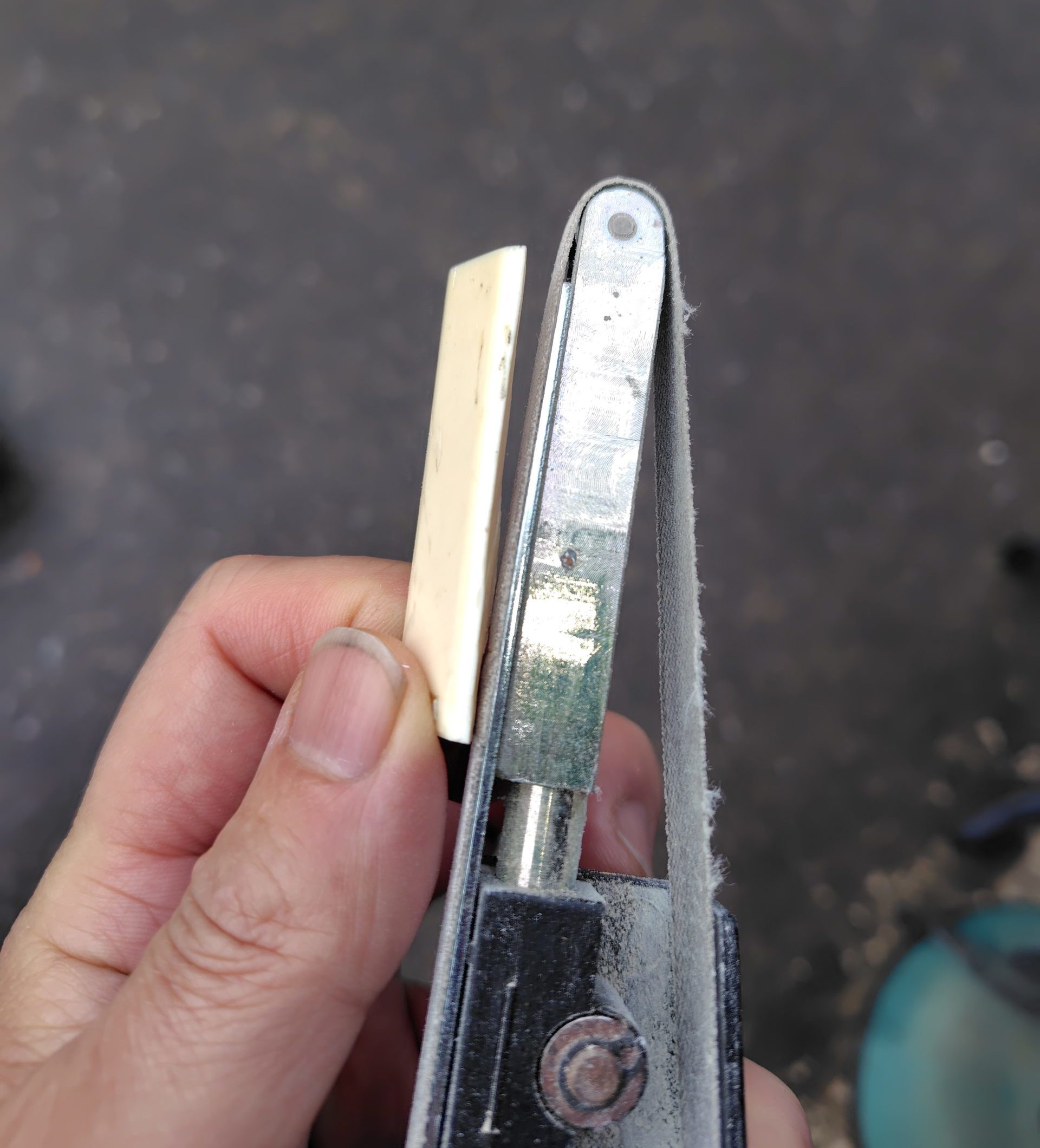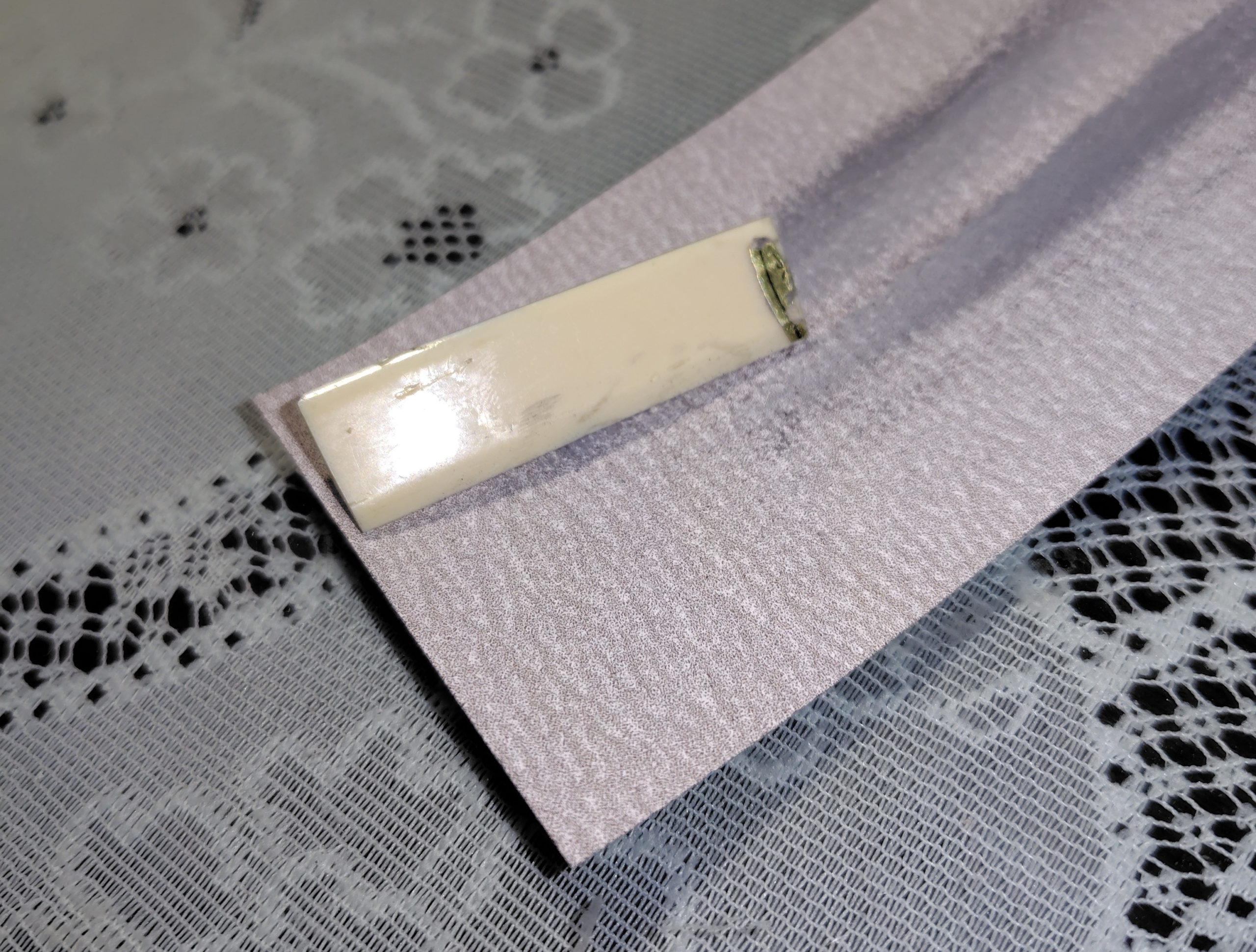 しかし、実家にて祖父が使っていてもう使用していない本象牙と書かれたハンコを発見!塩でお清めして、ありがたくナットにさせていただくことにしました。