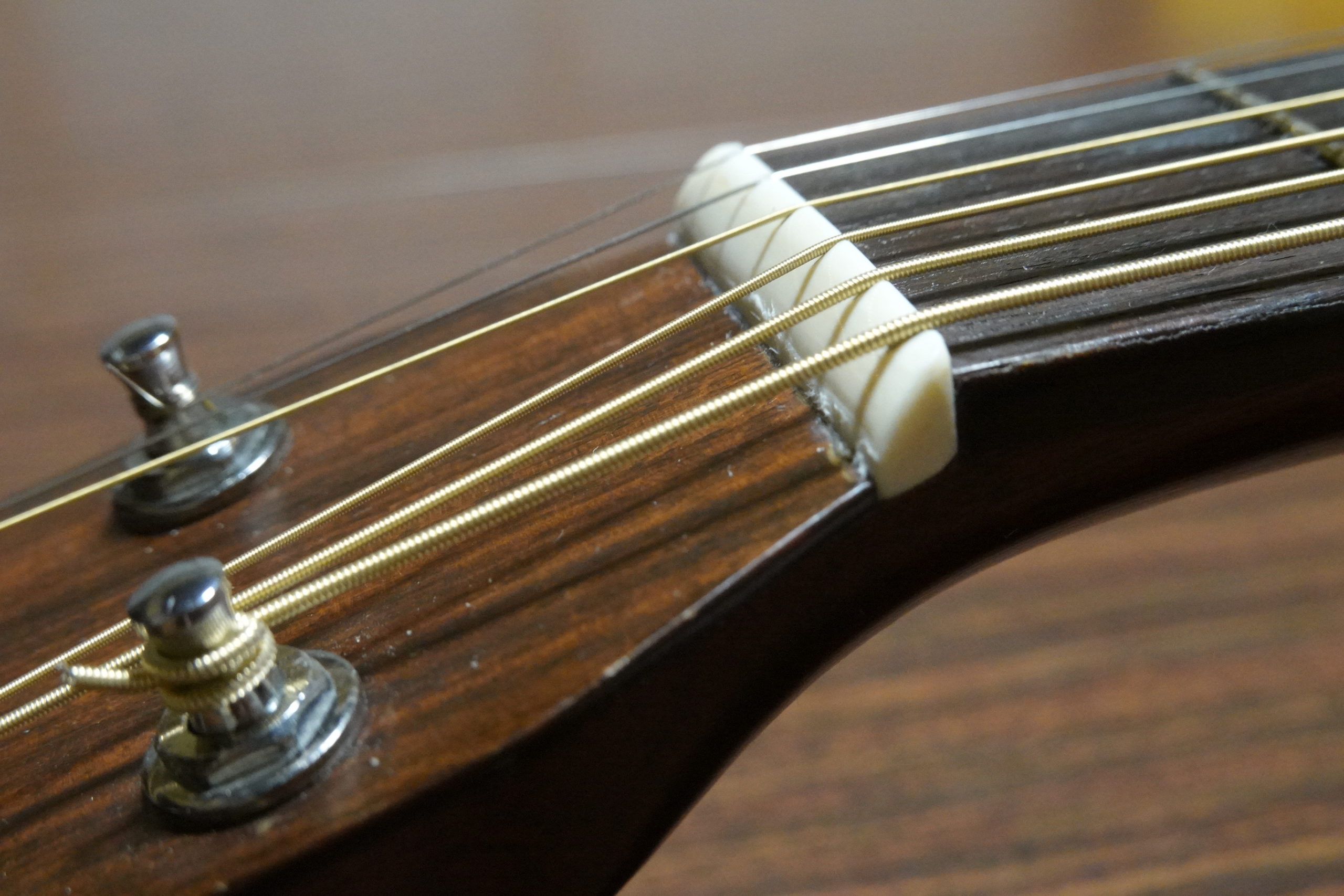 などがあげられますが、現在アコースティックギターのナットとしては、ほとんど牛骨かタスクだと思います。