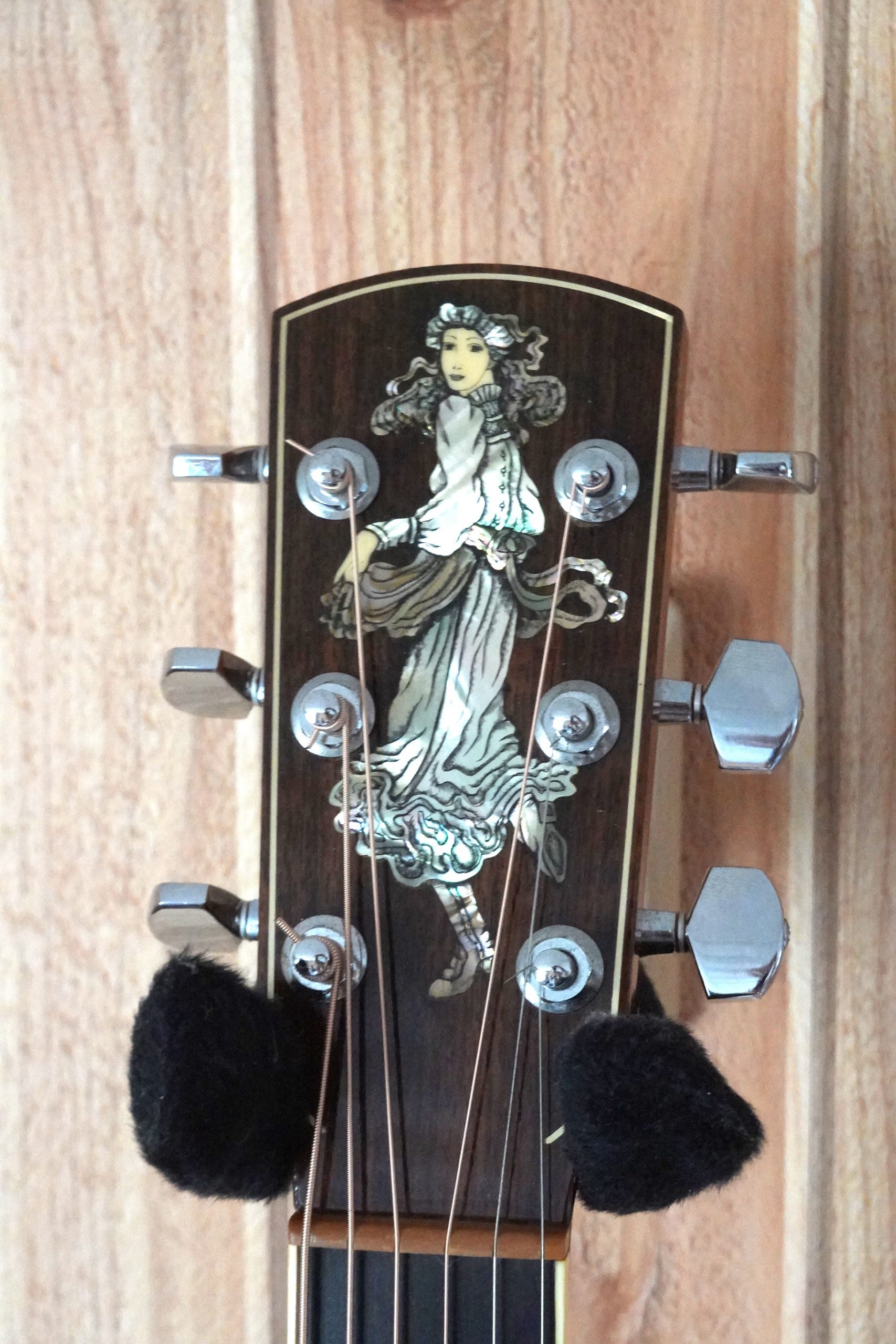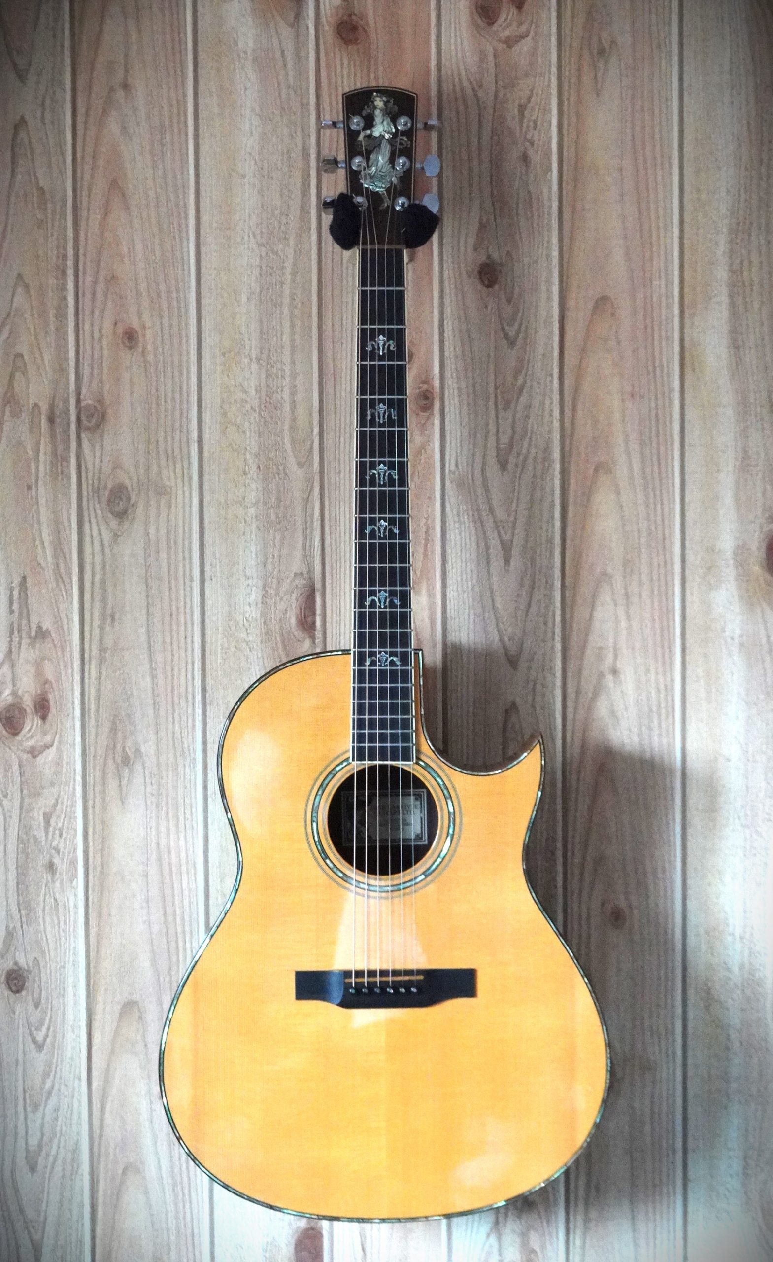 マーチンやギブソンといったアメリカンギターの伝統に縛られない別路線の新しい設計、グレードの高い木材の使用、また奥様であるウェンディ・ラリヴィーさんの美しい貝のインレイが特徴で、たちまち人気を獲得しました。